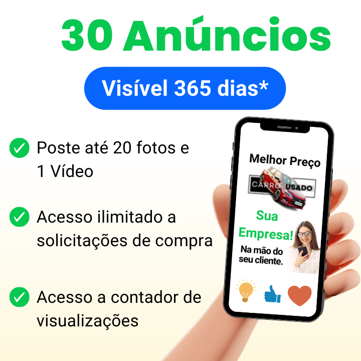 *Verifique nossas dicas para anúnciar carro usado, aprenda como postar suas fotos corretamente, anúncios fora dos termos exigidos não serão aprovados.